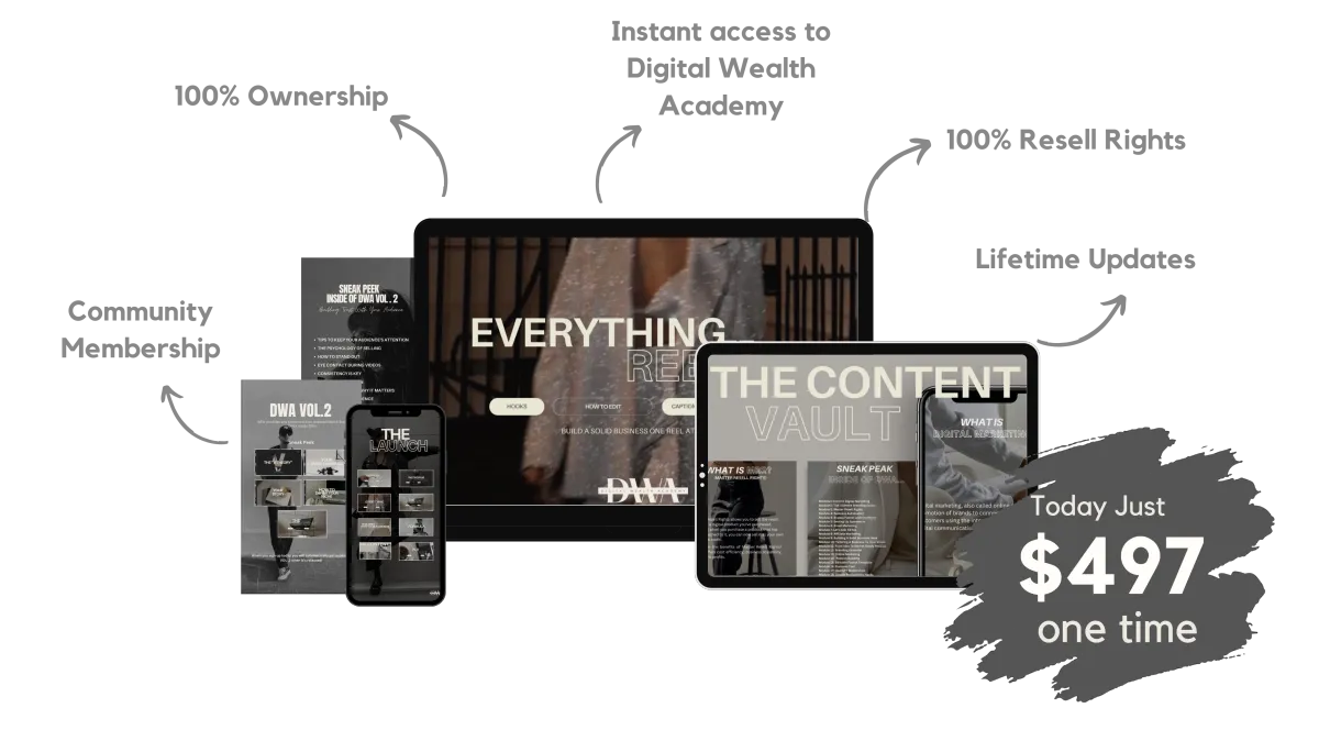This is a comprehensive marketing course designed for beginners (even with no experience) to learn how to launch a successful digital marketing business. This is a DONE-FOR-YOU in-depth marketing course. The course includes step-by-step modules that will walk you through launching your digital product business and how to use digital marketing to make sales. You will learn how to brand yourself, create multiple streams of income, set up your automated income funnels, and advertise on various social media channels, and everything else you need to create a profitable online business. This product is unique because once you buy it you own it. This means you can re-brand and sell it for 100% profit. All future updates on DWA are free and new modules are being updated on a regular basis.